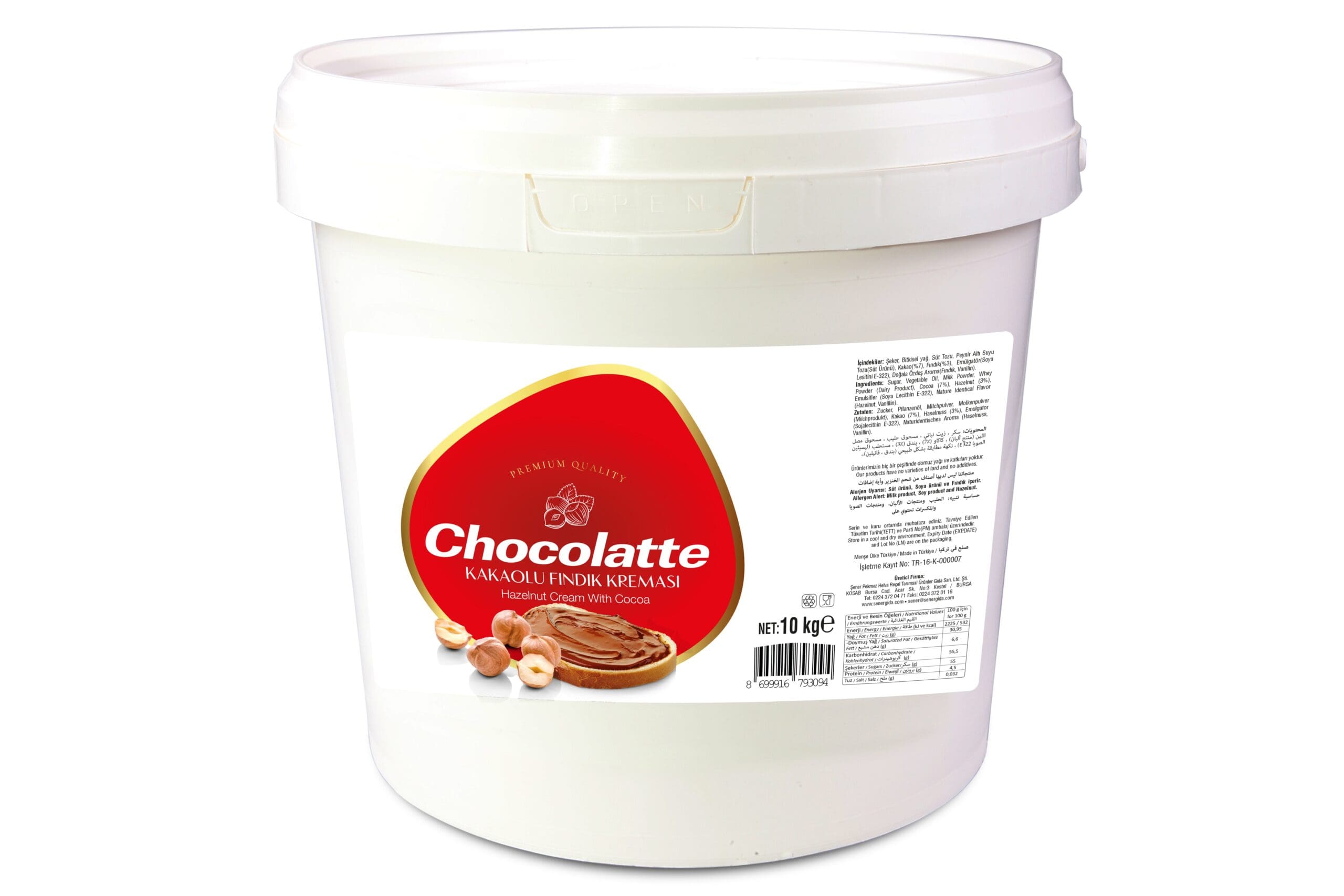 Chocolatte kakaolu fındık kreması, yoğun kakao ve fındık lezzetini buluşturan, 10 kg’lık büyük bir ambalajda sunulan bir lezzet şölenidir