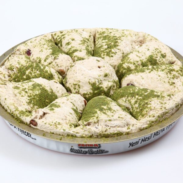 ŞENER HELVA’nın 5 kg tepsili fıstıklı lüks versiyonu, lezzetli fıstık parçalarıyla zenginleştirilmiş, kaliteli bir helva deneyimi sunar