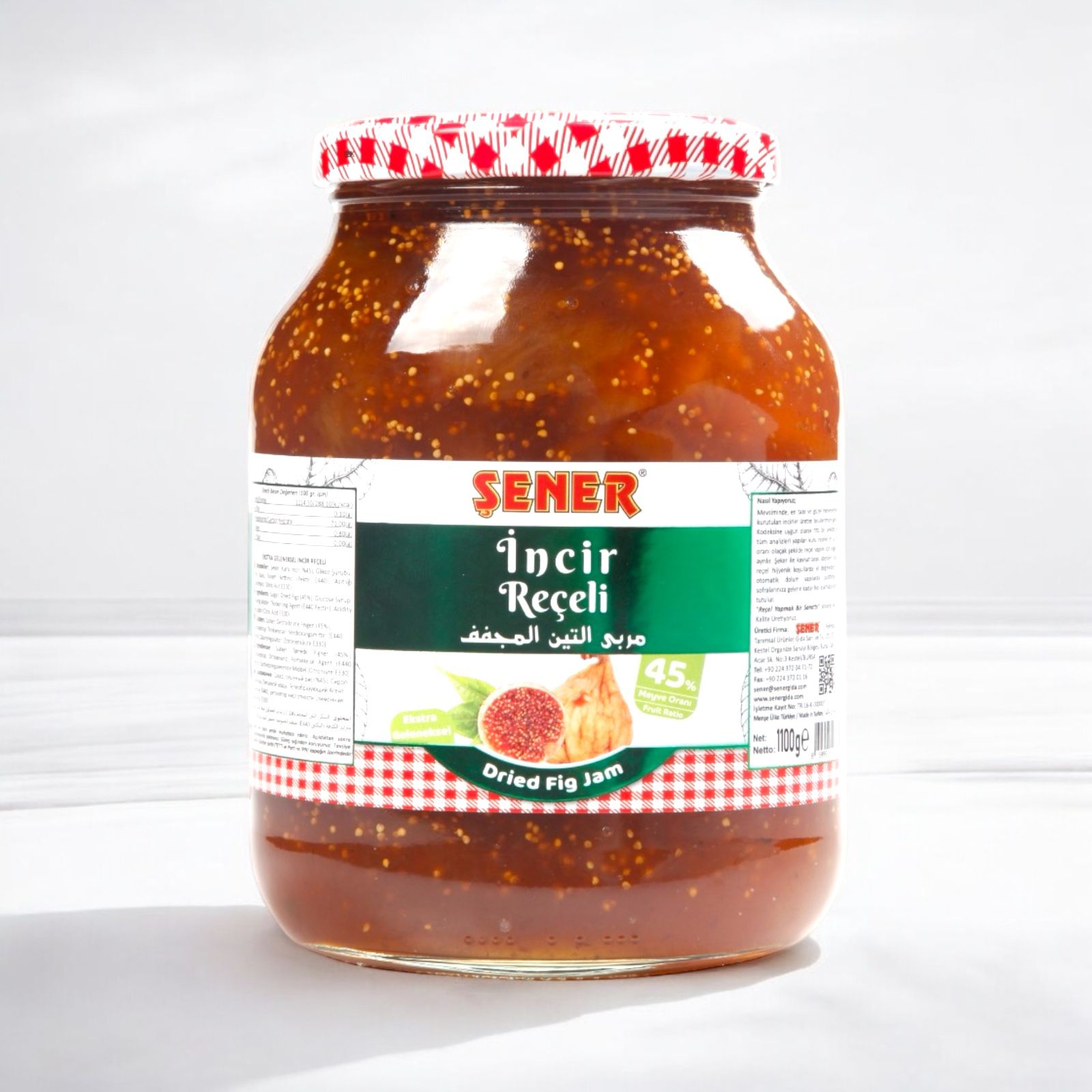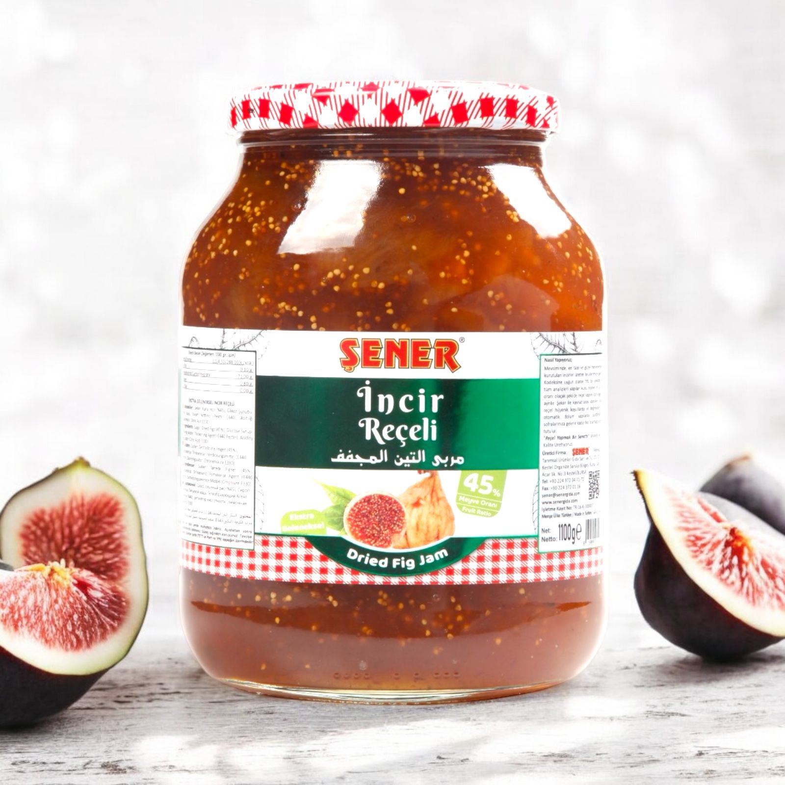 Şener Reçel 1000 GR Kuru İncir, %45 meyve içeriğiyle özenle hazırlanmıştır